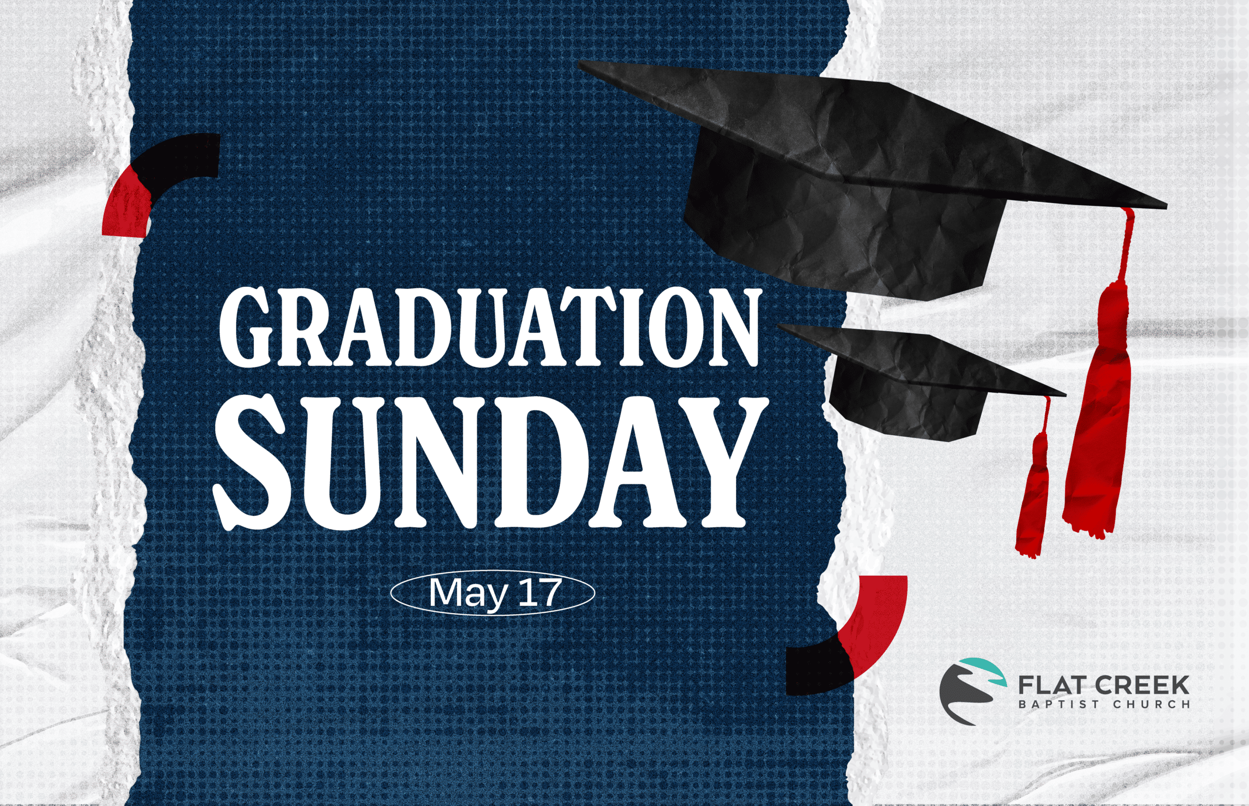 Graduation Sunday Join us this Sunday in our 10:45am service to celebrate our high school graduates! + Add to Google Calendar + iCal / Outlook export 00 days 00 hours 00 minutes 00 seconds Date May 17 2026 Time 10:45 am - 12:00 pm Location Flat Creek Baptist Church 161 Flat Creek Trail Fayetteville GA 30214 Category Students Organizer Ryan Appling Email ryana@flatcreekbaptist.org Share this event
