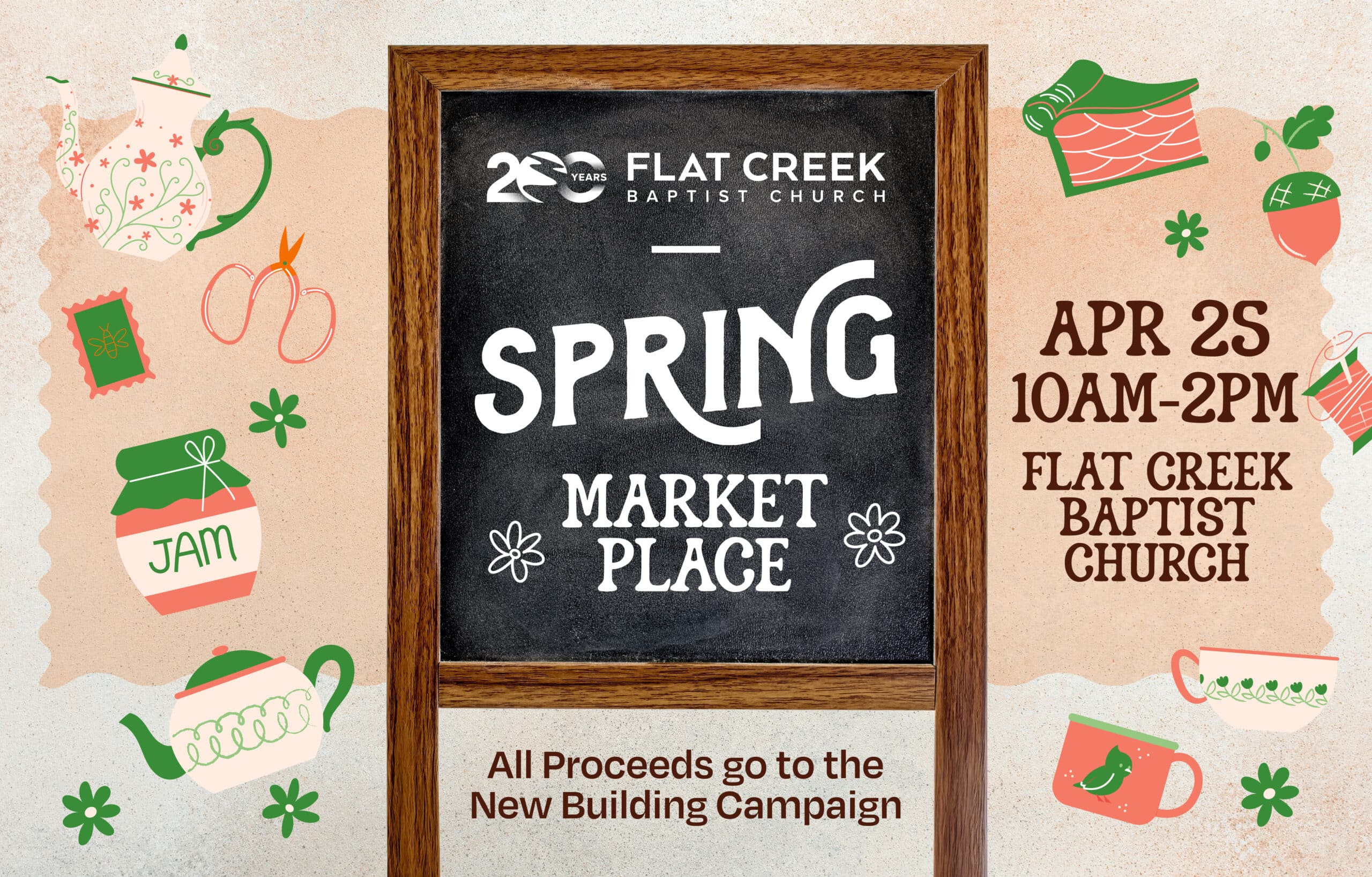Open to all FCBC members and entire community, those visiting the Market Place will be able to shop various tents for crafts, baked good, food items, and other items. Proceeds from the Spring Market Place go to the Building Fund.